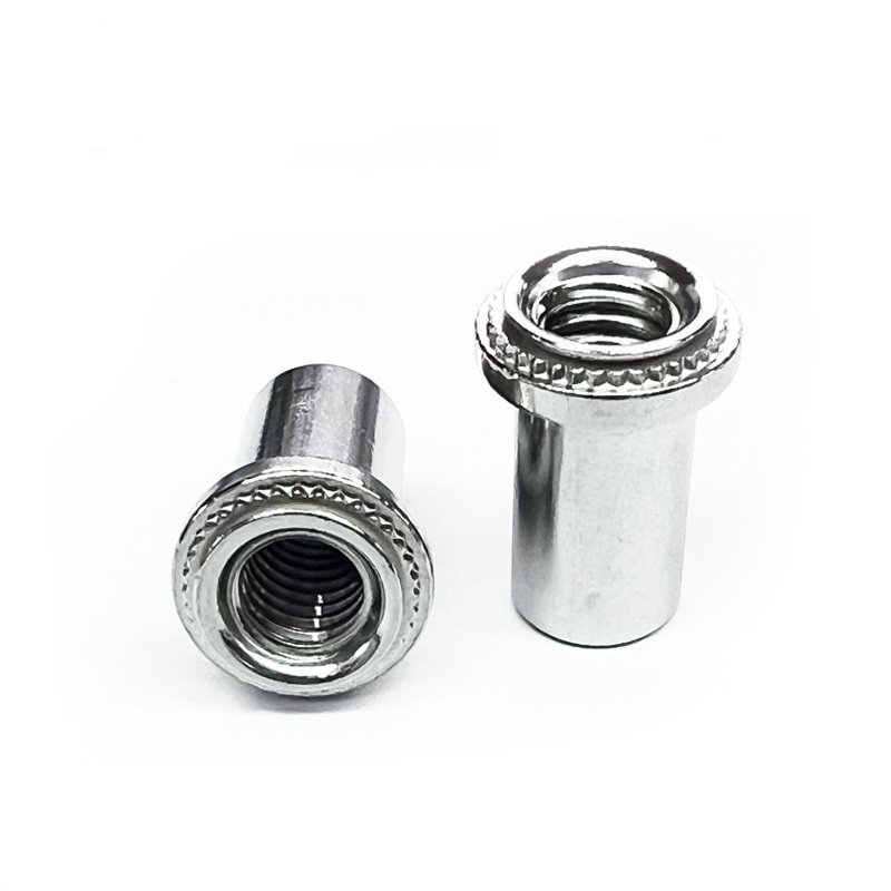 छाप क्लिन्चिंग नट एकदम सीधा छ, तपाईं मानक टिनेमेटिक वा हाइड्रोलिक लचिंग उपकरणहरू प्रयोग गर्न सक्नुहुनेछ। यहाँ कसरी काम गर्दछ: पहिलो, नट एक पूर्व-चकित प्वालमा राख्नुहोस्, त्यसपछि दबाब लागू गर्न पंच र मर्न सेट गर्नुहोस्। मर्नेले एक द्रुत कदममा ठोस मेकानिकल लक बनाएर नटका ठोकर कदम चालु पार्नु