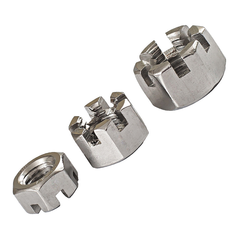 रक्त र विरोधाय विरुद्ध अझ राम्रो संरक्षणको लागि, स्लटेड असफल मुकुट नट एक प्रकारको लक्षित सतहको उपचारको साथ उपलब्ध छ: हट-डुबान ग्यालभिंगले कडा-डुबान गरोजरको सुरक्षाको लागि। जब क्याडमायम प्लेटिंग एयरस्पेसमा व्यापक रूपमा प्रयोग गरिन्छ, यसको प्रयोग केही परिदृश वा केही मापदण्डको अन्तर्गत सीमित छ। विशेष कोटहरू जस्तै GEMOMET र Docormete पनि विभिन्न वातावरणको क्षतिको लागि पनि उपलब्ध छन्। यी उपचारहरू मार्फत, तिनीहरूले लामो समयसम्म राम्रो अवस्था कायम राख्न सक्दछन् र स्ट्राइमेनिसमा क्षतिग्रस्त हुने सम्भावना कम हुन्छ जहाँ कन्टेन्टेन्टको समस्या हो र कारखाना क्षेत्रहरू रसायनहरूसँग सम्पर्कमा छन्। स्टेनलेस स्टील स्लोट गरिएको क्रोड नउगाका लागि, सत्कार मानक हो। त्यो प्रक्रियाले नि: शुल्क फलामको रक्षा गर्दछ र सुरक्षात्मक अक्साइड लेयर फार्म गर्दछ, उनीहरूको तुलनामा उनीहरूको अधिकतम प्राकृतिक क्षमता प्रदान गर्दछ।