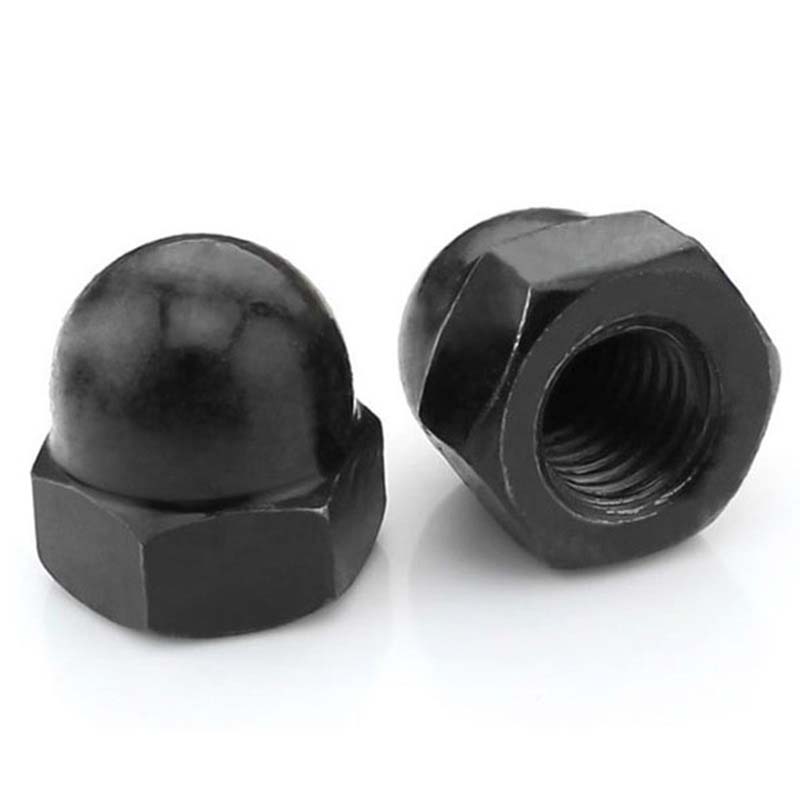उच्च शक्ति ठूला हेक्सागन गुम्बज टोपी नटहरू मध्यम वा उच्च कार्बन स्टील (जस्तै ग्रेड 8, 10, वा 12.9), मिश्र धातु, वा कहिलेकाहीं स्टेनलेस स्टील (जस्तै A2/A4 304/316) सँग बनाइन्छ। यी ठोस सामग्रीहरूले तिनीहरूलाई बलियो बनाउँछ।