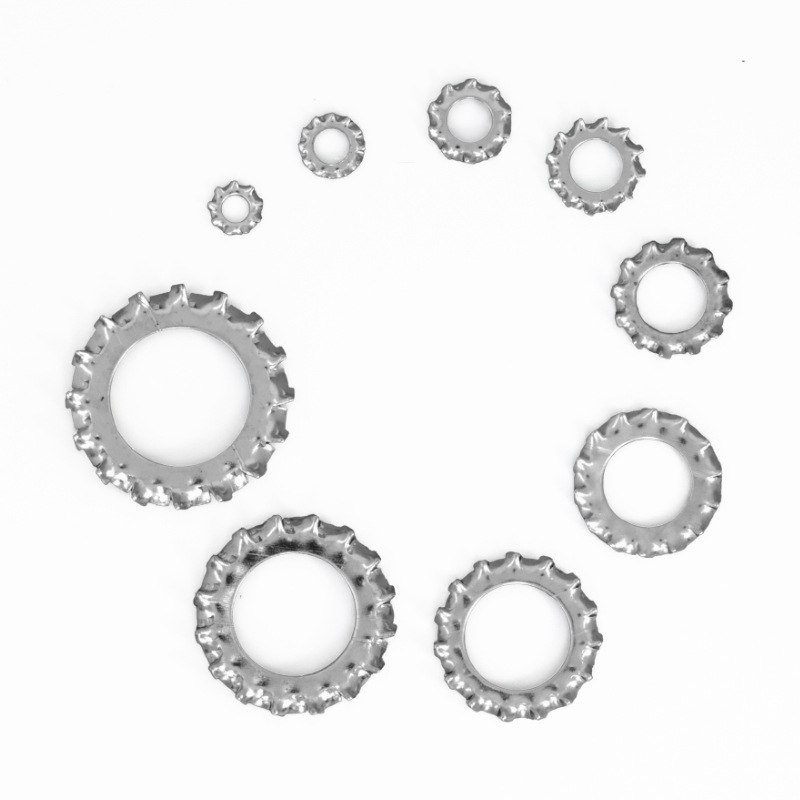 A)आन्तरिक दाँत लक अशरधेरै कम्पनको साथ स्थानहरूको लागि बनाइएको छ, जस्तै कार वा मेशिनरी। भित्र भित्र दाँत बोल्ट / नट र सतहमा तिनीहरू जोडिएको सतह सिर्जना गर्दै, स्पिनिंगको बिरूद्ध झगडा गर्ने घर्षण सिर्जना गर्दछ। यसले उनीहरूलाई छोड्न रोक्दछ जब त्यहाँ आन्दोलन वा भारी भार छ, जडानलाई समय बित्दै गयो। Tooothed डिजाइन नरम सामग्री वा सतहहरु मा राम्रोसँग काम गर्दछ जुन पूर्ण रूपमा चिल्लो हुँदैन।