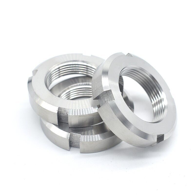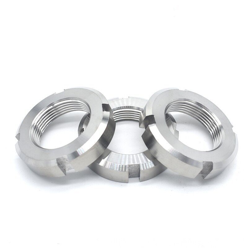 रेलवे उद्योगमा, यी प्रेसिजन नोचेड स्लटेड लकिङ राउन्ड नटहरू बोगीहरू र ट्र्याक फिक्सेसन प्रणालीहरूको लागि ठूलो महत्त्वका छन्। यसले बलियो कम्पन र बारम्बार भारहरू सामना गर्न र दीर्घकालीन प्रयोगको लागि बल आवश्यकताहरू पूरा गर्न आवश्यक छ। यी नटहरू सख्त मापदण्डहरू अनुसार निर्मित हुन्छन्, र तिनीहरूको सटीक स्लट आयामहरू सुरक्षित तारिङ सुविधाको लागि डिजाइन गरिएको हो।