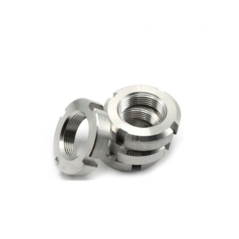 A: हाम्रो रोलिङ शाफ्ट स्लटेड लक नट्सका स्लटहरू बोल्ट वा स्टडको प्वालसँग लाइनअप गर्न बनाइन्छ एक पटक तपाईंले नटलाई कडा गरिसकेपछि। त्यसपछि तपाइँ स्लट र प्वाल मार्फत एक कोटर पिन धक्का दिनुहोस्। यसले स्लटेड राउन्ड नटलाई भौतिक रूपमा स्थानमा लक गर्दछ, त्यसैले यो कम्पनबाट ढीलो हुँदैन — र यो अनुप्रयोगहरूको लागि वास्तवमै महत्त्वपूर्ण छ जहाँ सुरक्षा आवश्यक छ।