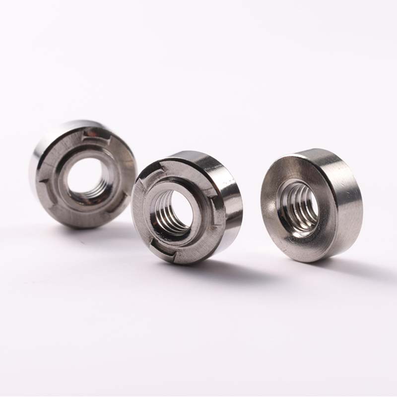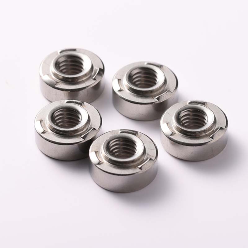 सेल्फ क्लिन्चिङ प्रोजेक्शन वेल्ड नटको आधार मुनि दाँतदार वा दाँत भएको संरचना हुन्छ। जब तपाईंले तिनीहरूलाई पूर्व-ड्रिल गरिएको प्वालहरूमा धकेल्नुहुन्छ (विशेष वेल्डिङ बन्दूक वा उपकरण प्रयोग गरेर), यी सेरेसनहरू धातुको प्लेटमा इम्बेड हुनेछन्। त्यसपछि, तपाईं नट को केन्द्रीय प्वाल मार्फत वेल्डिंग प्रदर्शन गर्न सक्नुहुन्छ। वेल्डिङले यसलाई स्थायी रूपमा स्थानमा लक गर्नेछ, तर सेरेसनहरूले यसलाई वेल्डिङ प्रक्रियाको लागि पहिले नै दृढतापूर्वक तय गरिसकेका छन्। सेल्फ-लकिङ ढाँचा सहज रूपमा डिजाइन गरिएको छ, मेकानिकल लकिङलाई वेल्डिङको समयमा एकै साथ प्राप्त गर्न सक्षम पार्दै, जडानको स्थिरताको लागि दोहोरो ग्यारेन्टीहरू प्रदान गर्दछ। यो वेल्डिंग भागहरूमा बलियो अनुकूलन क्षमता छ। चाहे यो पातलो फलामको प्लेट होस् वा मोटो स्टिल प्लेट, यसले बलियो र सहज रूपमा वेल्डिङ र फिक्सेसन गर्न सक्छ।